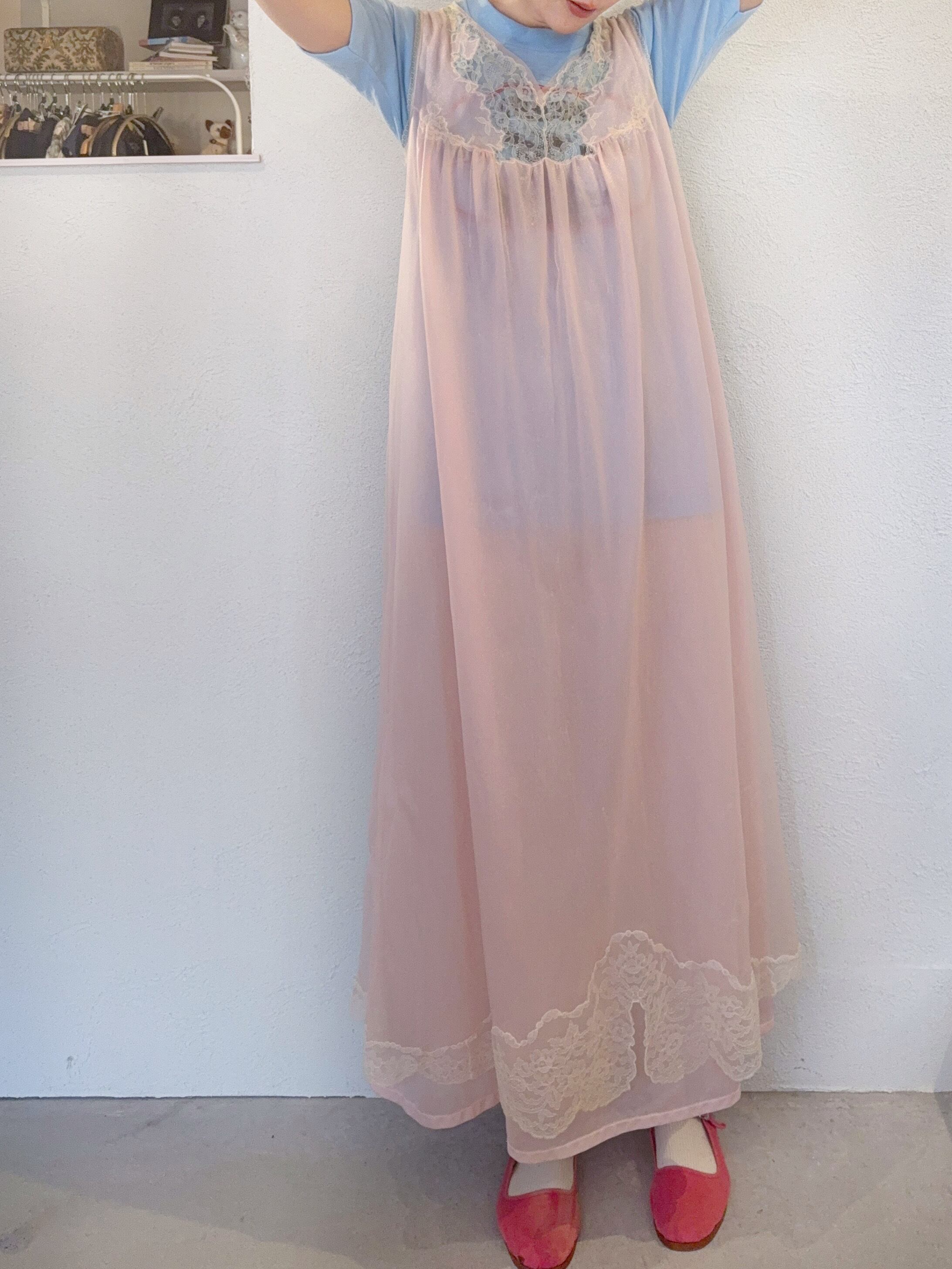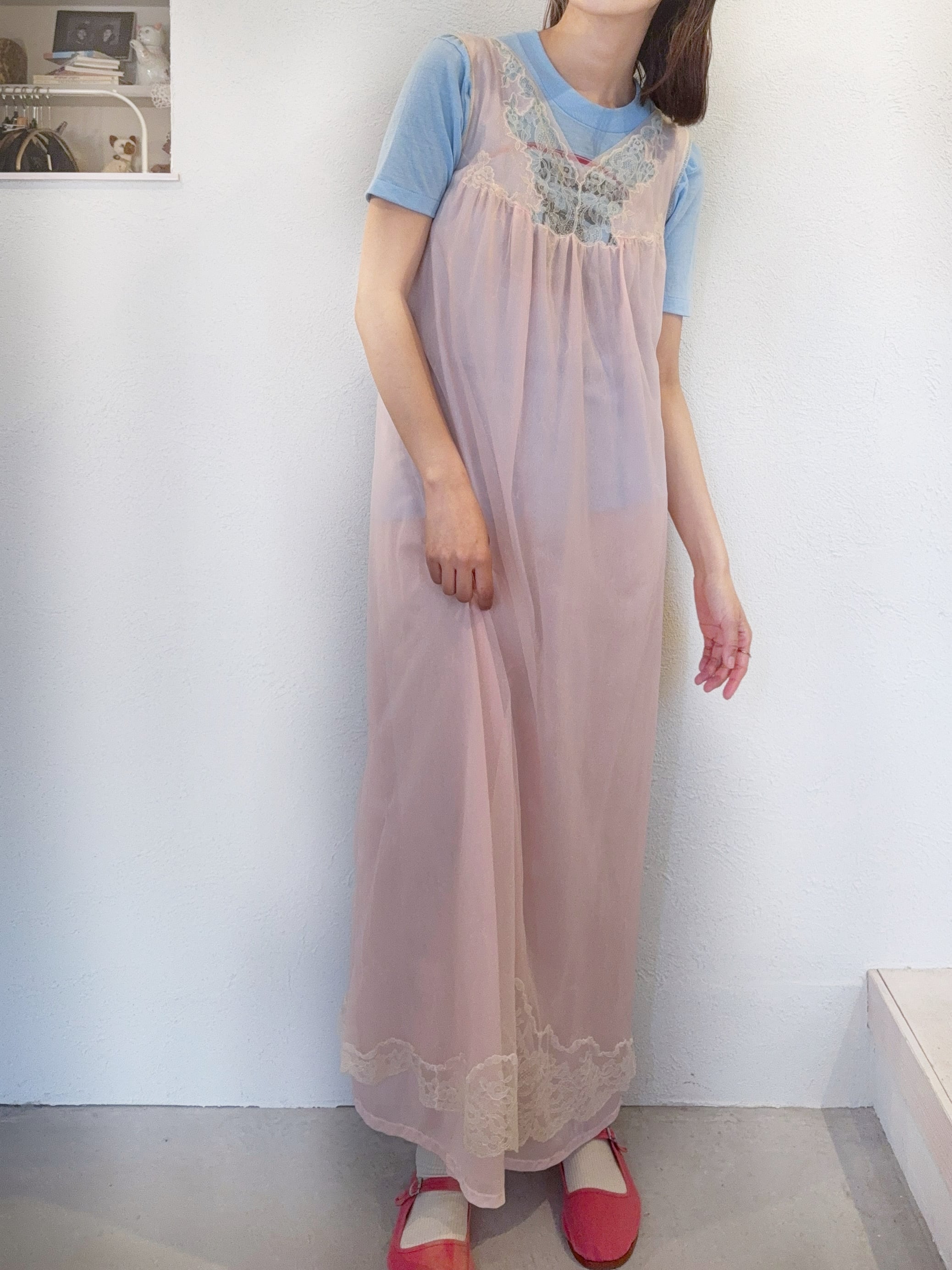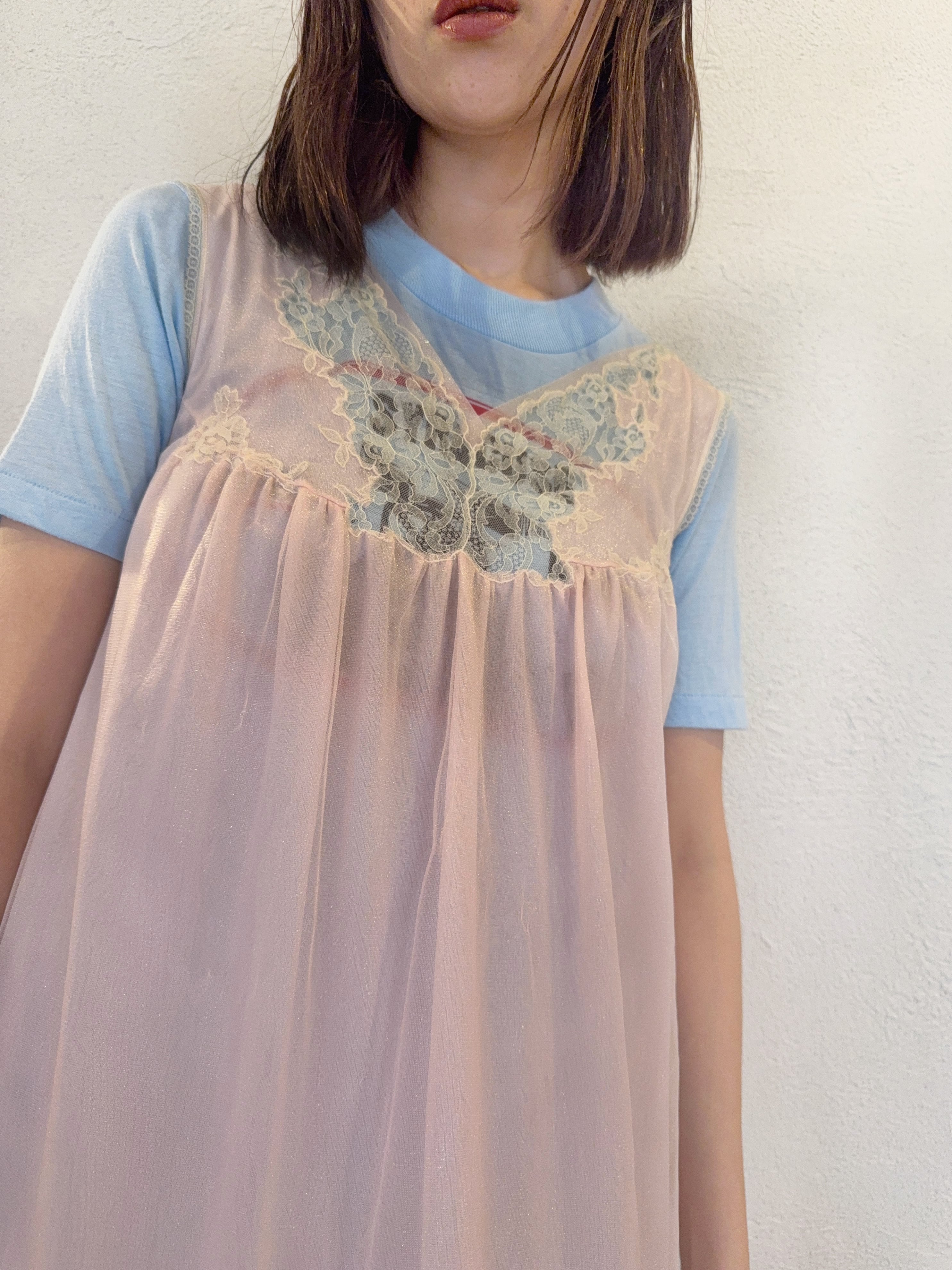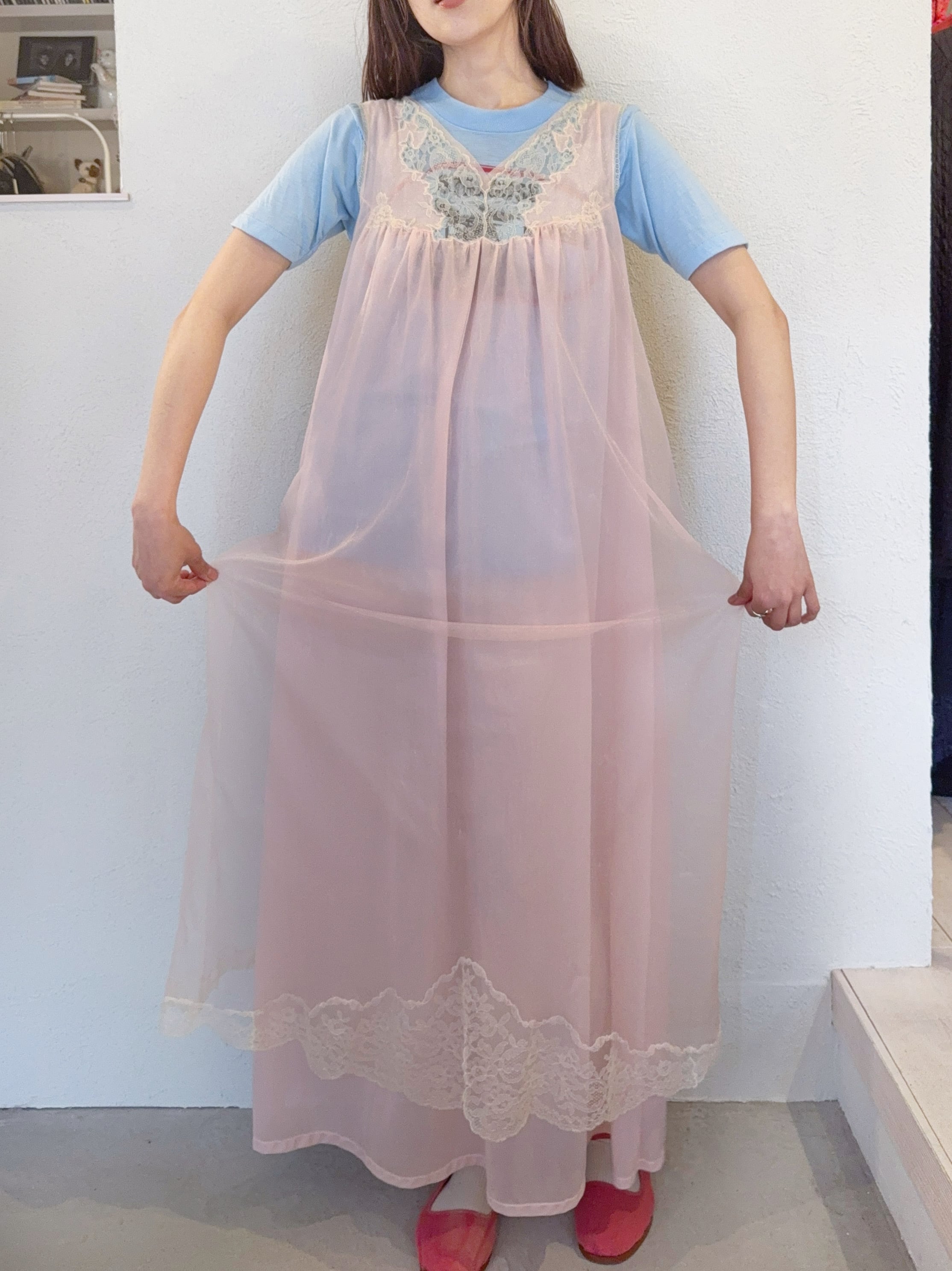 ヴィンテージTとの相性も良く、ヨーク部分のレースからプリントが見えても可愛いです。