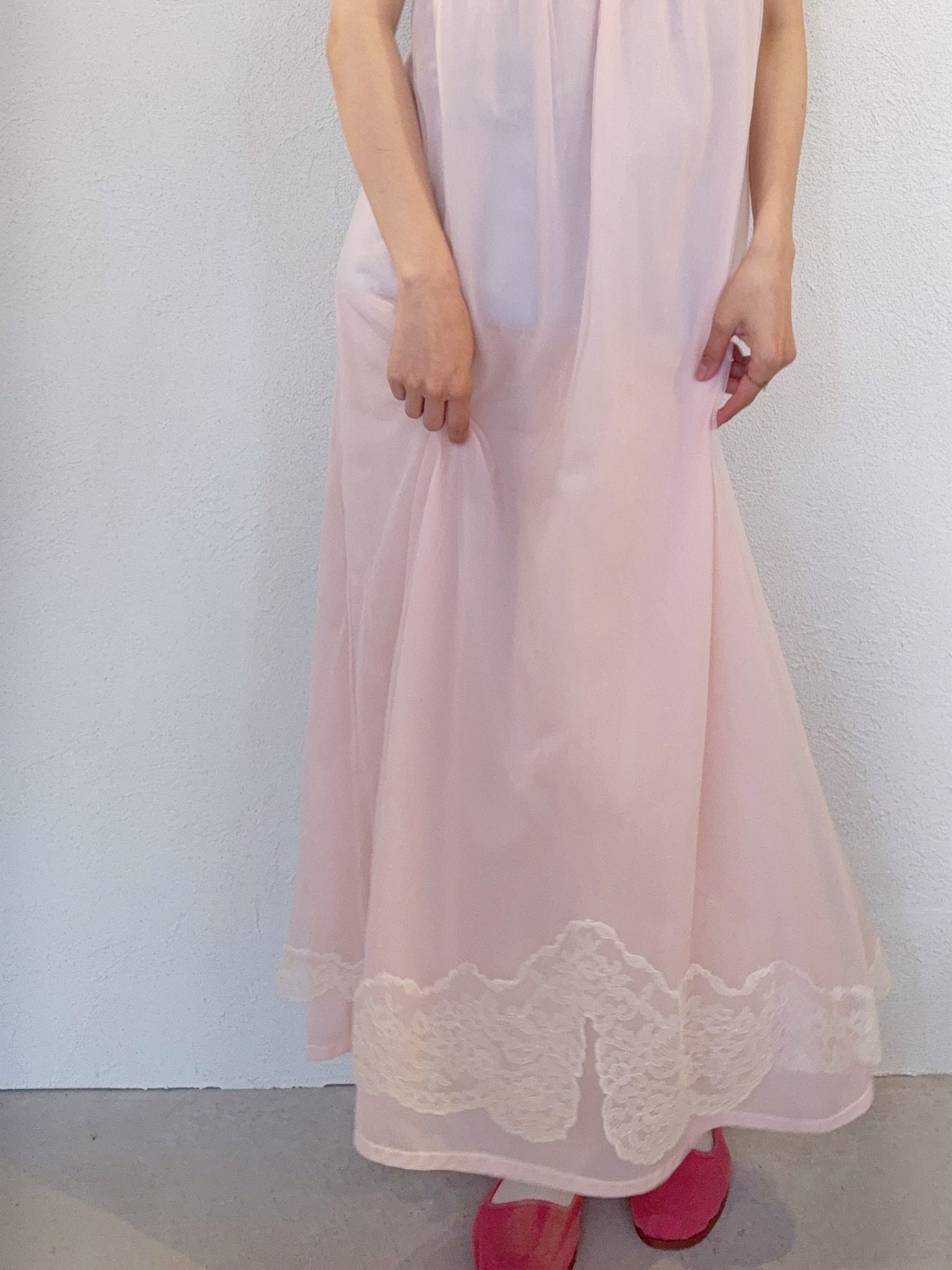 胸元と裾にはスカラップレース。